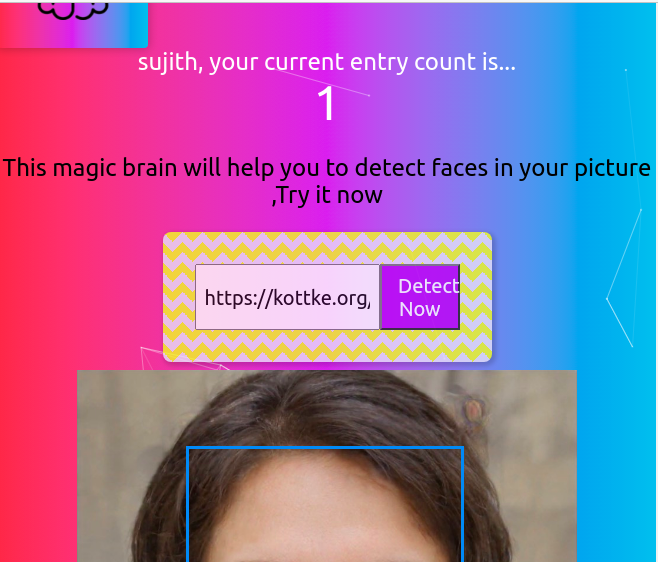 Detects face in a provided image ,used clarifai third-party api for machine learning api's